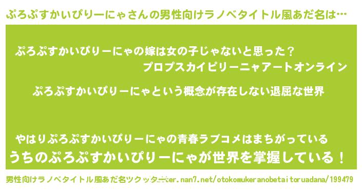 | 胡散臭い通販商品みたいなあだ名 | 『絶対に幸福をもたらす健康食品…その名も「ぷろぷすかいぴりーにゃ」』 |