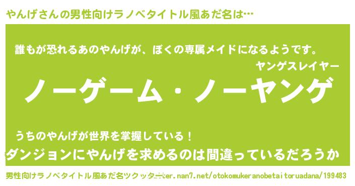 やんげさんの男性向けラノベタイトル風あだ名をツクッター!