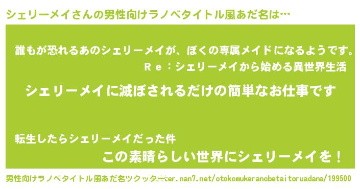 | ヘコむあだ名 | 『シェリーメイ(小並感)』『シェお』 |