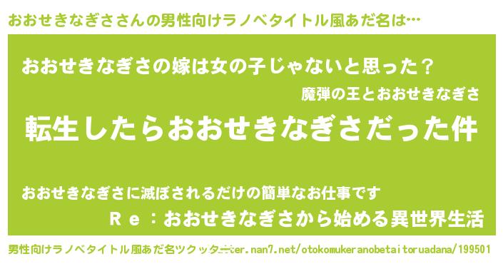 | 胡散臭い通販商品みたいなあだ名 | 『伝統あるサプリメント…その名も「おおせきなぎさ」』 |