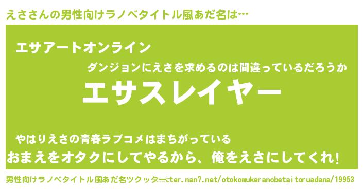 | 伝説のあだ名 | 『伝説の竜騎士えさ』『孤高の僧侶えさ』 |