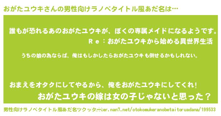 おがたユウキさんの男性向けラノベタイトル風あだ名をツクッター!