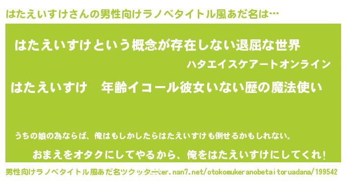 | 女子向けラノベタイトル風あだ名 | 『はたえいすけの玉の輿計画!』 |