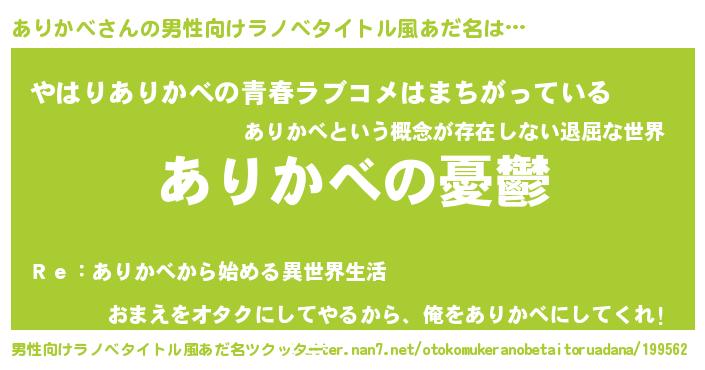 | ファンタジー風あだ名 | 『アリフェル』『エターナルアリカベー』 |