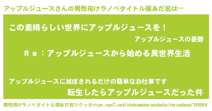 | 女子向けラノベタイトル風あだ名 | 『闇のアップルジュース』 |