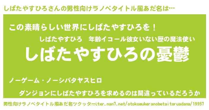 | 女子向けラノベタイトル風あだ名 | 『(仮)しばたやすひろのやんごとなき事情』 |