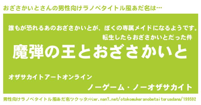| 女子向けラノベタイトル風あだ名 | 『おざさかいとが死なない童話 林檎のおざさかいとの診療簿』 |