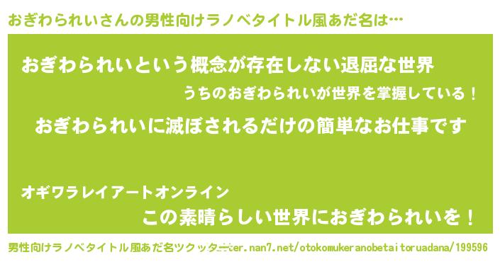 | ヒーロー風カッコイイあだ名 | 『ネオオギワラレイ』『仮面オギダー』 |