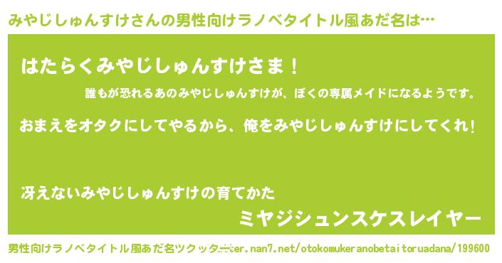 | 女子向けラノベタイトル風あだ名 | 『みやじしゅんすけ夫妻のなれそめ』 |