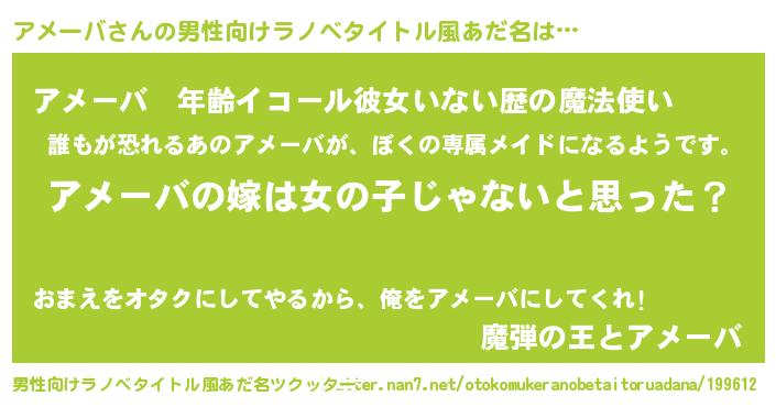 | ヘコむあだ名 | 『アメっちょ』『アメーバ(苦笑)』 |