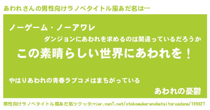 | ヒーロー風カッコイイあだ名 | 『仮面アワダー』『慈愛の使者あわれ』 |