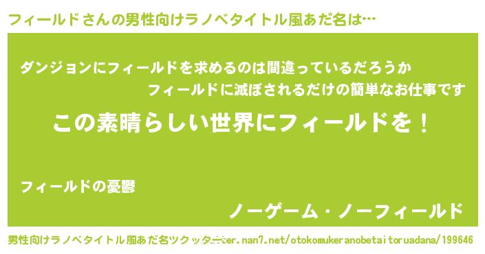 | 女子向けラノベタイトル風あだ名 | 『乙女ゲームの破滅フラグしかない悪役フィールドに転生してしまった…』 |