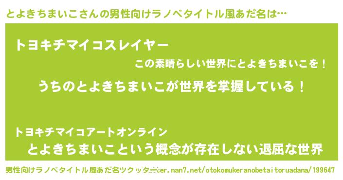| ヘコむあだ名 | 『とよきちまいこ(笑)』『とよにゅー』 |