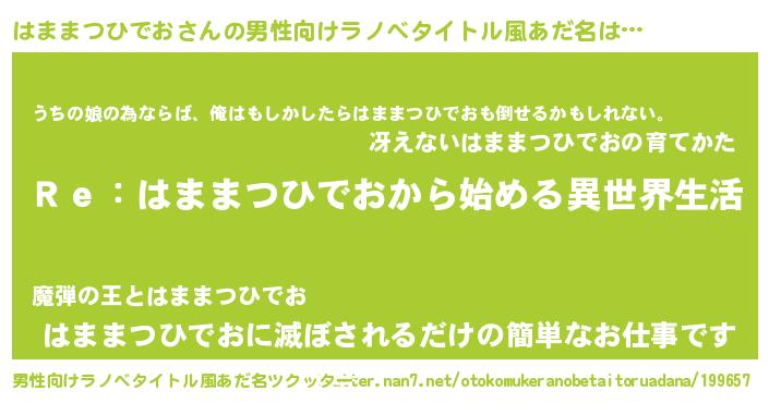 | 女子向けラノベタイトル風あだ名 | 『はままつひでおストレイドッグス』 |