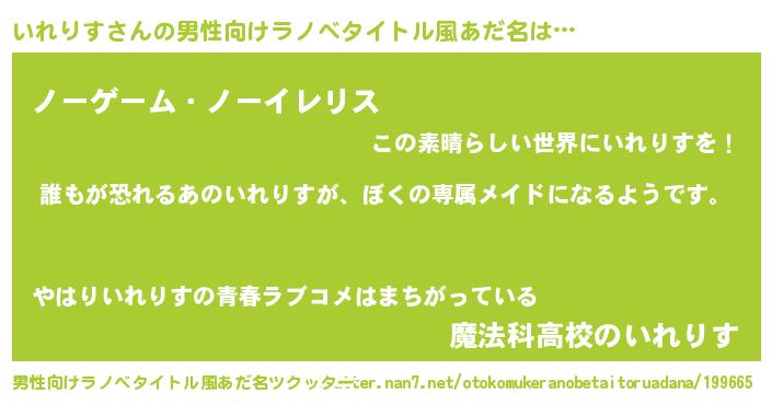 | 意味不明あだ名 | 『永久保存いれりす』『自称いれりす』 |