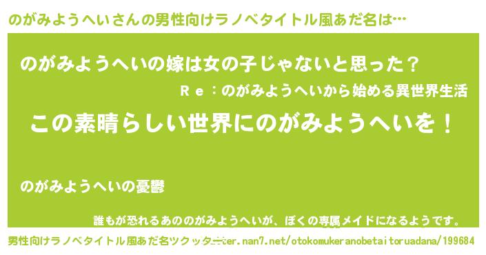 | 意味不明あだ名 | 『住所不定無職のがみようへい(4歳)』 |