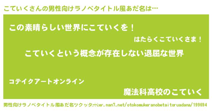 | 意味不明あだ名 | 『永久保存こていく』『自称こていく』 |