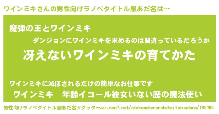 | 意味不明あだ名 | 『住所不定無職ワインミキ(8歳)』 |