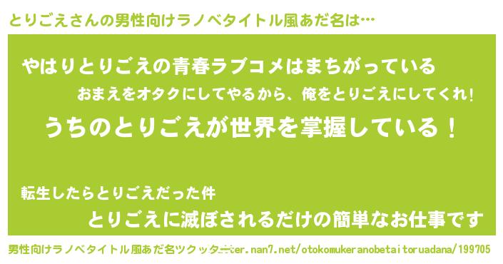 | 意味不明あだ名 | 『とりごえフォーエバー』 |