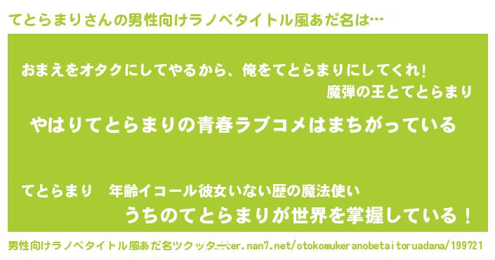 | ヘコむあだ名 | 『豆乳』『てとらまり(小並感)』 |