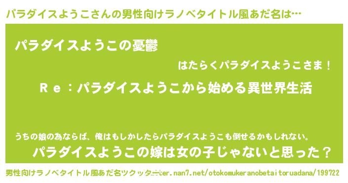 パラダイスようこさんの男性向けラノベタイトル風あだ名をツクッター!