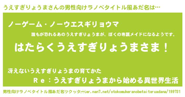 | 女子向けラノベタイトル風あだ名 | 『首の姫と首なしうえすぎりょうま』 |