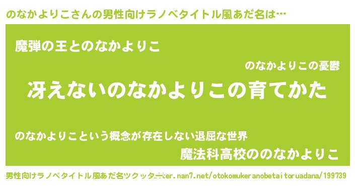 | 意味不明あだ名 | 『住所不定無職のなかよりこ(84歳)』 |