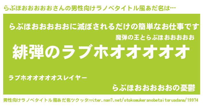 らぶほおおおおおさんの男性向けラノベタイトル風あだ名をツクッター!