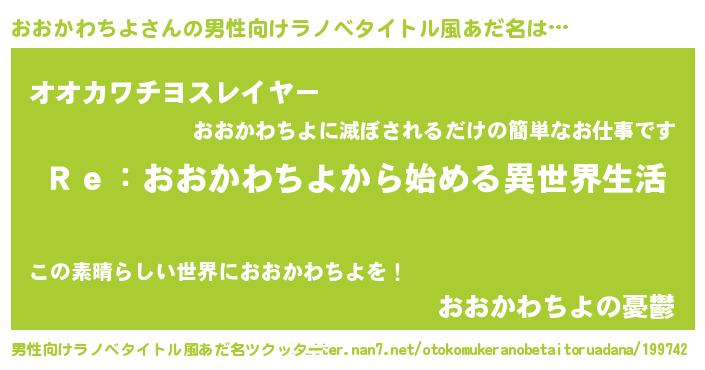 | 女子向けラノベタイトル風あだ名 | 『おおかわちよストレイドッグス』 |