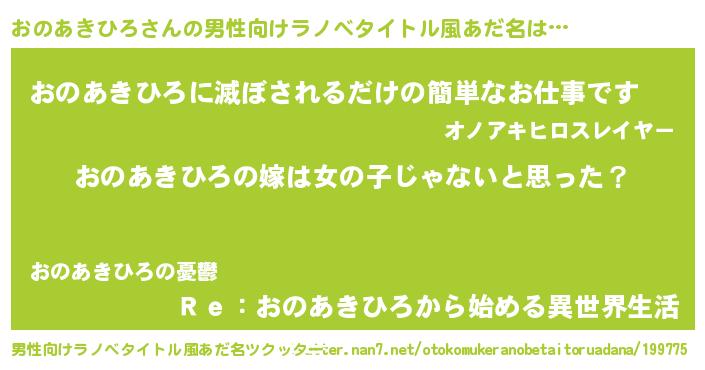 | 女子向けラノベタイトル風あだ名 | 『おのあきひろ様がみてる』 |