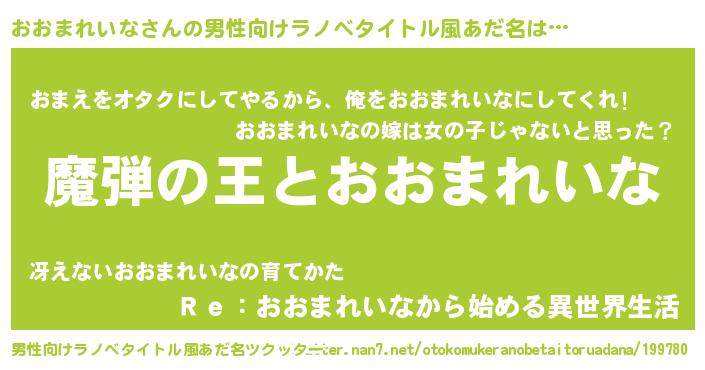 | 意味不明あだ名 | 『住所不定無職おおまれいな(10歳)』 |