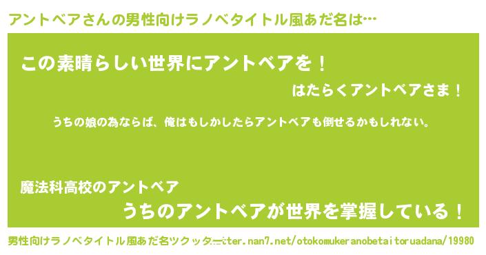 | 意味不明あだ名 | 『アントベアフォーエバー』 |