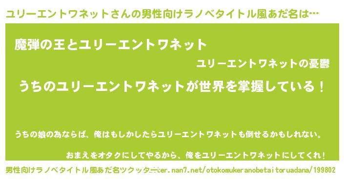 | 意味不明あだ名 | 『住所不定無職ユリーエントワネット(85歳)』 |
