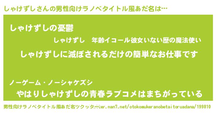 | ファンタジー風あだ名 | 『シャフェル』『エターナルシャケズシー』 |