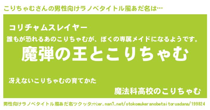 | 女子向けラノベタイトル風あだ名 | 『乙女ゲームの破滅フラグしかない悪役こりちゃむに転生してしまった…』 |