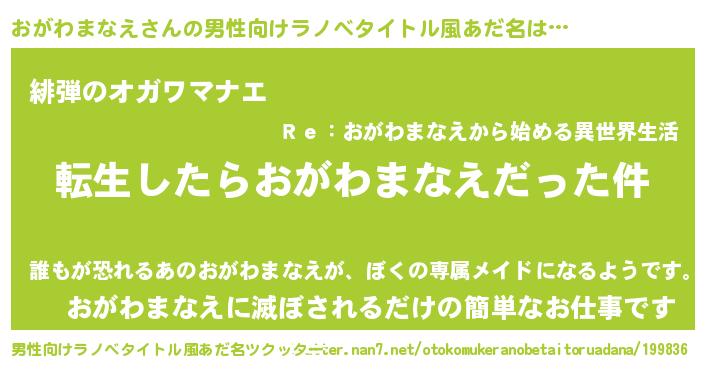 | 女子向けラノベタイトル風あだ名 | 『おがわまなえの玉の輿計画!』 |