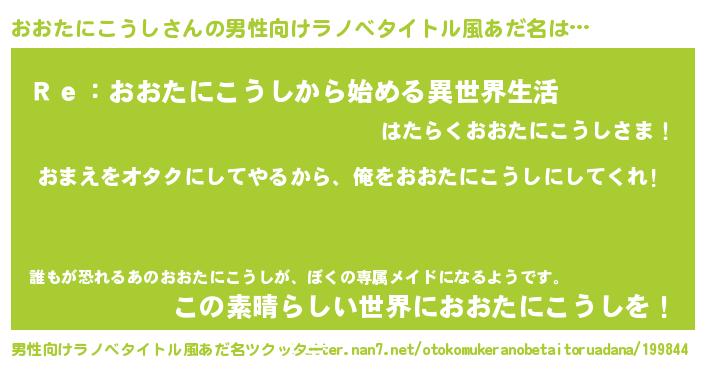 | 女子向けラノベタイトル風あだ名 | 『おおたにこうし夫妻のなれそめ』 |