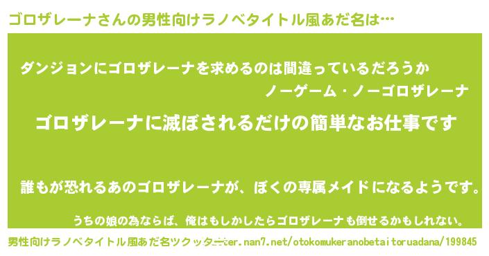 | 胡散臭い通販商品みたいなあだ名 | 『全米が絶賛したサプリメント…その名も「ゴロザレーナ」』 |