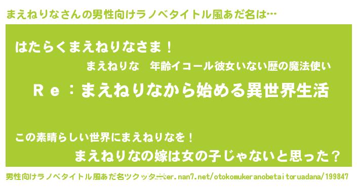| 女子向けラノベタイトル風あだ名 | 『闇のまえねりな』 |
