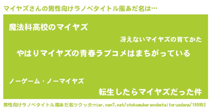 | ヘコむあだ名 | 『豆乳』『マイもー』『マイお』 |