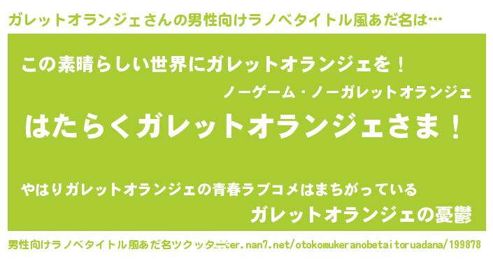 | 意味不明あだ名 | 『住所不定無職ガレットオランジェ(9歳)』 |