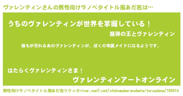 | 意味不明あだ名 | 『永久保存ヴァレンティン』 |