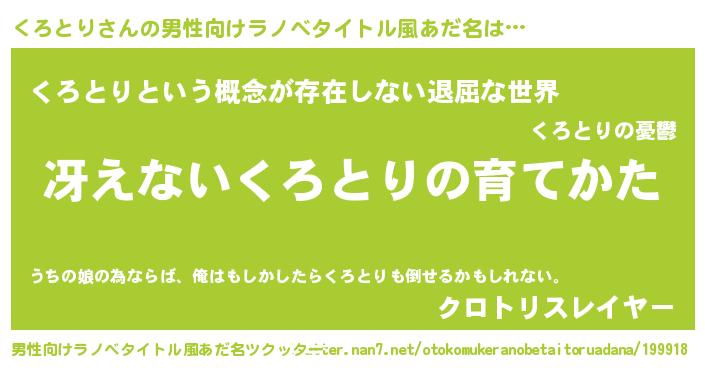 | 意味不明あだ名 | 『永久保存くろとり』『ペロリンくろとり』 |