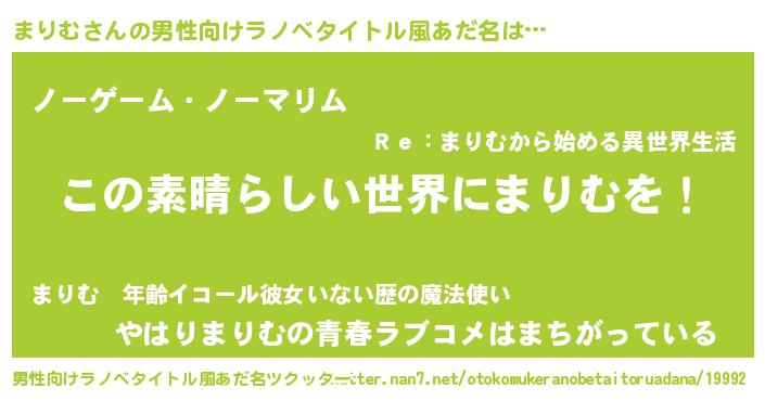| 胡散臭い通販商品みたいなあだ名 | 『あなたにだけ特別に提供する100年もののヴィンテージワイン…その名も「まりむ」』 |