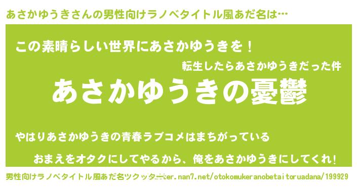 | 肩書あだ名 | 『あさかゆうきCEO』『あさかゆうき教官』 |