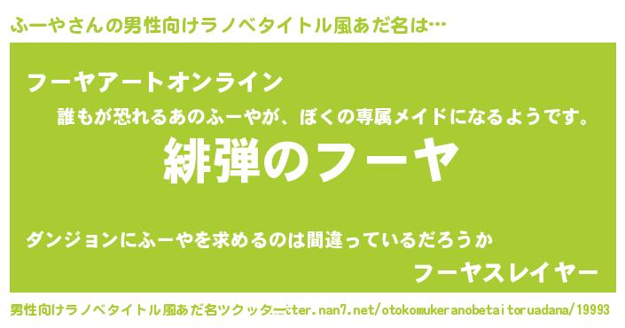 | ヘコむあだ名 | 『ふーにゅー』『ふーや(震え声)』 |