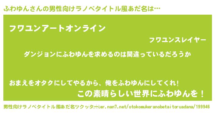 | 女子向けラノベタイトル風あだ名 | 『ふわゆんは平凡を望む』 |
