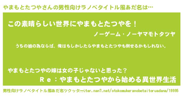 | ファンタジー風あだ名 | 『エターナルヤマモトタツヤー』 |