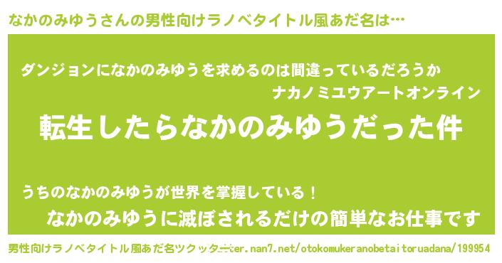 | 料理風あだ名 | 『なかのみゆうごはん』 |