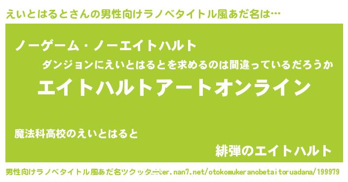 | 胡散臭い通販商品みたいなあだ名 | 『億万長者になれる水晶球…その名も「えいとはると」』 |